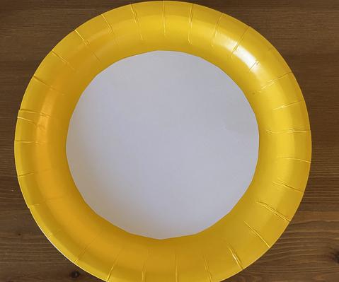 First start by cutting a circle out of the white piece of paper, and glue it on the middle of your paper plate.