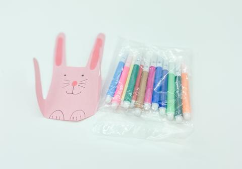 Next, cut of the middle finger of your traced hand as well as trace and cut the bottom of your traced hand to be curved and decorate your bunny. You can draw a face on your bunny, feet, and colour in the ears.