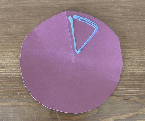 Secondly, put glue on a quarter of the circle and glue it onto the side of the circle creating a cone.