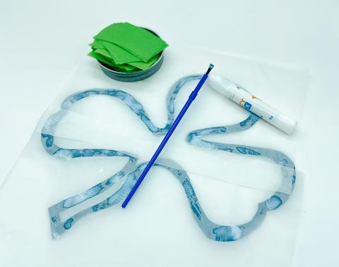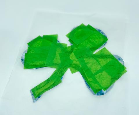 After all your glue has a dried, cut off all the tissue that extends past the shamrock shape.