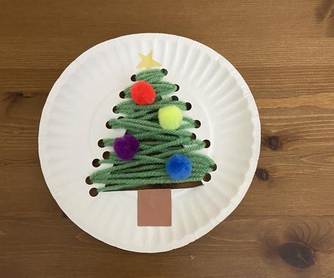 Lastly, add decorations to your Christmas tree. You can use yellow construction paper as the star, brown paper as the tree trunk and pom-poms as ornaments.