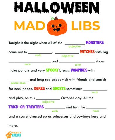 HALLOWEEN MAD LIB PRINTABLE!Mad Libs is the world’s greatest word game—and can make anyone the funniest person in the room! See below for a free printable that is sure to make everyone laugh!